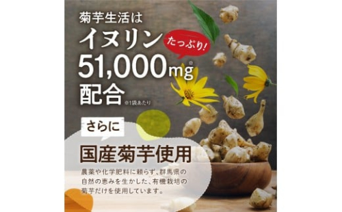 国産菊芋を使用。1袋あたりイヌリン51,000mgと、5つの食物繊維を配合しました。