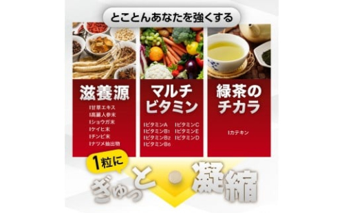 そして、滋養源である甘草エキス、高麗人参末、ショウガ末、桂皮末、陳皮末、棗抽出物を配合。 崩さないためのビタミンCをはじめとするマルチビタミン、そして緑茶由来のカテキンでとことんあなたを強くします。