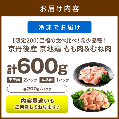 【限定200】至福の食べ比べ!希少品種!京丹後産 京地鶏 もも肉&むね肉 計600g