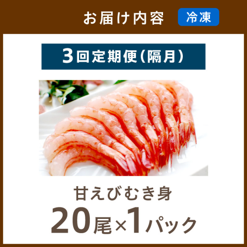 【定期便 隔月×3回】甘ーい!お手軽!日本海産 甘えび むき身 20尾×1パック 刺身用 むきエビ むき海老 むきえび お刺身 簡単調理 あまえび 甘海老 生食 刺身 送料無料 冷凍 国産
