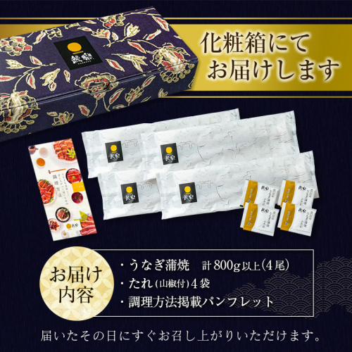 \特大のうなぎ4尾 計800gをお届け!!/