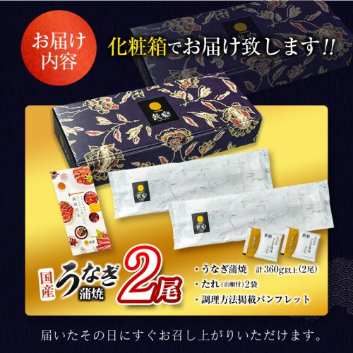 - うなぎ 鰻楽 国産 蒲焼 2尾 計360g以上 無頭 高評価 おすすめ 冷凍 簡単調理 個包装 鰻 魚介 贈答品 ギフト 贈り物【B555-mult】