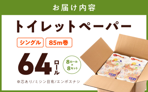 - トイレットペーパー シングル85M巻 64ロール(8ロール×8セット)