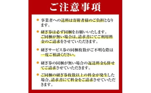 ※研ぎ券は必ず同梱をお願いいたします。ご同梱が無い場合は、請求書にてご利用料金のご請求をさせていただきます。
