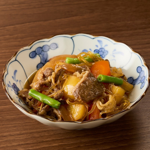 野菜(たまねぎ(国産)、白ネギ(国産)、しいたけ)・牛肉(国産)・こんにゃく・みりん・しょうゆ・砂糖・清酒・香味食用油・かつおエキス・こんぶエキス/加工でん粉・調味料(アミノ酸等)・増粘剤(キサンタンガム)・水酸化カルシウム