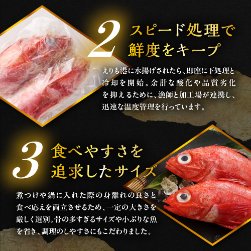 北海道えりも町の豊かな海で育ったキンキを、鍋や煮つけにぴったりの状態でお届けします。