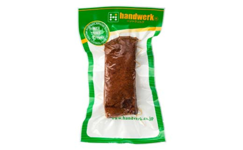 つややかで美しいピンク色の切り口と香ばしい香り、芳醇な味わいにハッとさせられるハントヴェルクの熟成ベーコン。「採算度外視で自分のやりたいように気持ちをぶつけているのがこのベーコンなんです」と代表の坂本健さん。素材となる豚肉はベーコンを仕込む日から逆算し、48時間以内に肉が届くよう豊浦町の指定農場に畜処してもらっています。それは鮮度によって仕上がりが全く違ってくるから。こうして届いたフレッシュな豚バラ肉にオーストリア(アルプス)産の天然岩塩を手で丁寧にすり込んでいきます。塩漬剤を注入して効率化を図るメーカーが多い中、「手間はかかるしロスも増えるが、おいしさを考えると伝統的な方法が一番」と、坂本さんはあえて面倒な方法を選びました。この後、空気に触れないよう低温で2週間じっくりと熟成。「この段階で赤身は熟成して旨みが増しますが、脂身は逆にどんどん酸化してしまう。どちらも美味しい状態を見極めるのが難しいんですよ」。新鮮な肉を自分の手で熟成させないと納得できる状態にはならないのだそう。最後に桜チップで4~5時間かけてスモークしますが、その間もベーコンが固くならぬよう付きっきりで仕上げ。「だから手間が掛かり過ぎ月2回しか作れないのです」。今の時点で最高に美味しいベーコンと思っていても、数ヶ月経つともっと美味しくできるんじゃないか?と、素材や工程を見直し少しずつ改善しているそう。「きっと、ずっと、満足することはないんでしょうね」。元々食肉加工品会社で働いていた坂本さんは、入社後初めて関わったプロジェクトで細切れの肉をつなぎ合わせてステーキにするという仕事に携わることに。「自分の初仕事だから本当は親に食べてもらいたかったのですが、材料も作り方も納得できなかった。そのとき、“親や子どもにごまかしのない本当に美味しいと思えるものを食べさせたい”と考えたのが、工房をかまえる原点となりました」。そしてドイツ語で“手仕事”の意味を持つ「ハントヴェルク」を工房の名前に。そこには坂本さんの食肉加工品に対する真っすぐな気持ちと尽きる事の無い探究心が凝縮されています。