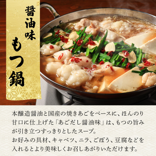 本醸造醤油と国産の焼きあごをベースに、ほんのり甘口に仕上げた「あごだし醤油味」は、もつの旨みが引き立つすっきりとしたスープ。
