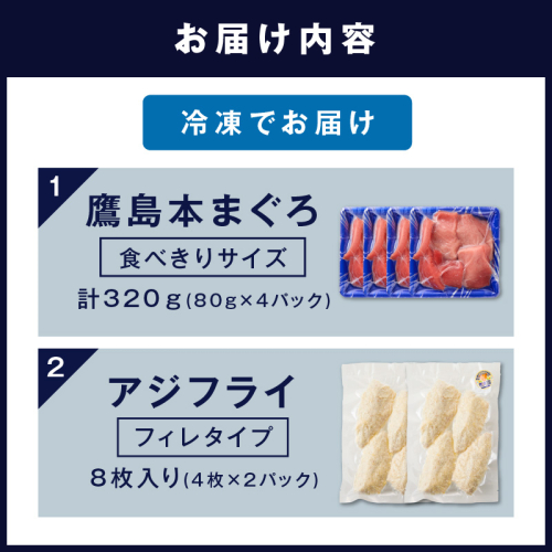 - 鷹島産本まぐろ 食べきりサイズ(80g×4p)とアジフライのセット(4枚×2p) ( 本まぐろ マグロ 鷹島産本まぐろ アジフライ あじ フィレタイプ ) 【B4-134】