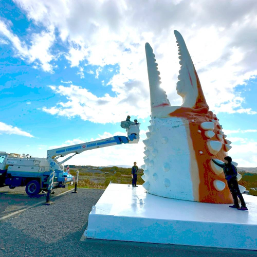 1983年、芸術家・長崎歳氏が制作した高さ約12mの巨大モニュメント「カニの爪」は、紋別市で開催された「流氷アートフェスティバル」をきっかけに誕生しました。オホーツクの豊かな海を象徴し、人々に自然との共生を問いかける存在として、40年以上にわたり市民や観光客から親しまれてきました。現在でも紋別を代表するシンボルとして、多くの人々に愛され続けています。