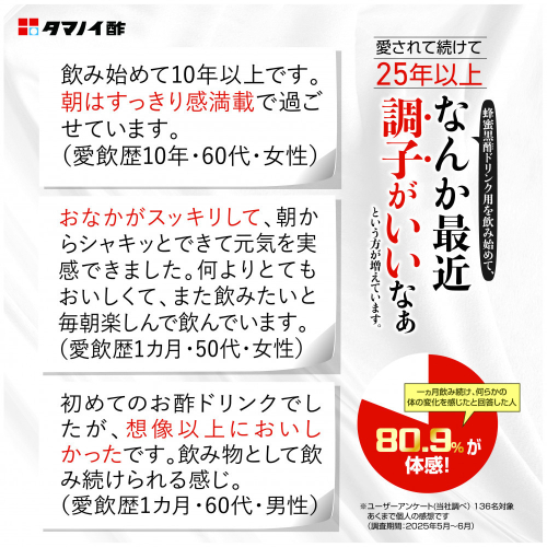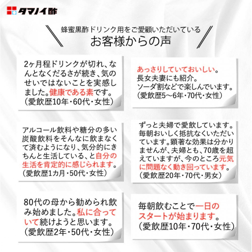 「蜂蜜黒酢」は「これなら続けられる!」というお客様のお声をたくさんいただいております。