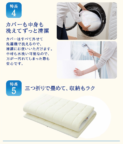 カバーは両面仕様で、夏面は通気性良く柔らかく、冬面はふっくら暖かい寝心地です。