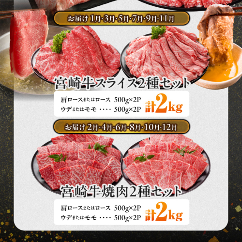 総重量8kg!宮崎牛赤身・霜降り肉のすき焼き用と焼肉用を、ご入金の翌月から交互に連続で4ヶ月間お届けします♪