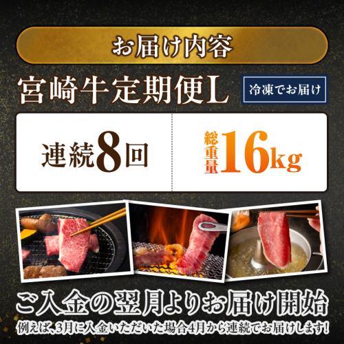 ≪8回連続お届け≫宮崎牛赤身霜降り食べ比べ定期便L(総重量16kg)_T256-8-N201