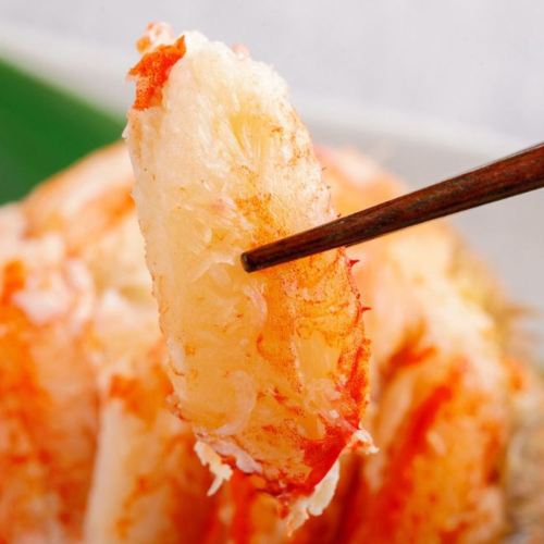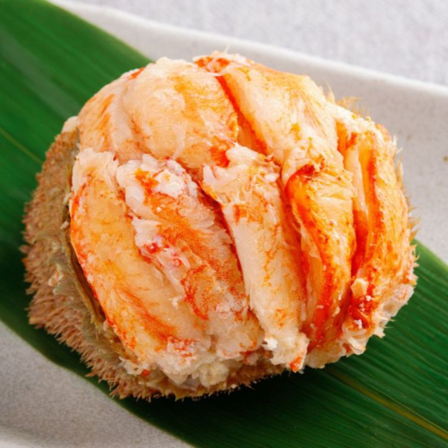 オホーツク海で獲れる毛がには、流氷の下で豊富に育つプランクトンを食べて育つため、旨みが濃く、身がぎっしりと詰まっていることで知られています。その中でも特に身入りが良く新鮮なものだけを厳選し、200g以上の活毛がにを、丁寧に手作業で剥いて甲羅に盛り付けました。