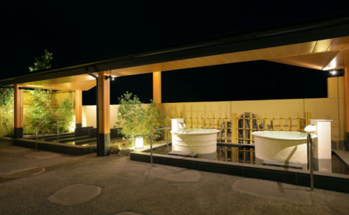 「露天岩風呂」では広々とした開放的な空間と、疲労回復や冷え性にも良い半身浴がお楽しみ頂け、濃度の高い炭酸ガスによる無数の泡がお身体を包み込み、血行を促進する「高濃度炭酸泉」もお楽しみ頂けます。