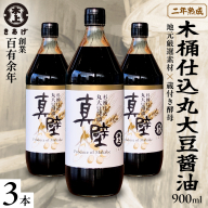 昔しょうゆは、地元産の大豆と小麦を使用し、一度成熟させて絞った生醤油に新たな「麹」を加え、再度発酵させ熟成させた「再仕込醤油」です。170年以上使い続けた蔵と木桶を用い、計3年(一度目が1年、二度目が2年)手を掛け醸し出した逸品です。