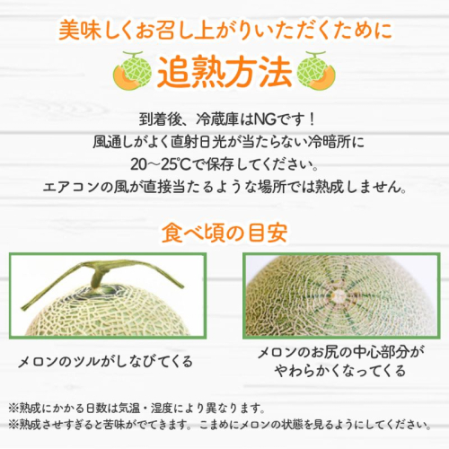 ※富良野メロンを美味しく食べるには、追熟させる必要があります。