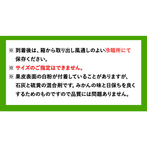 ※果皮表面の白粉が付着していることがありますが、石灰と硫黄の混合剤です。みかんの味と日保ちを良くするためのものですので品質には問題ありません。