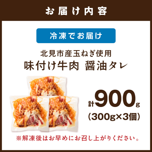 北見市産玉ねぎ使用 味付け牛肉 醤油タレ 300g×3個 ( 肉 牛肉 たまねぎ タマネギ 焼肉 )【224-0036】