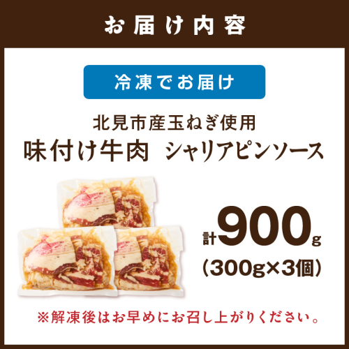【予約:2025年12月から順次発送】北見市産玉ねぎ使用 味付け牛肉 シャリアピンソース 300g×3個 ( 肉 牛肉 たまねぎ タマネギ 焼肉 )【224-0002】