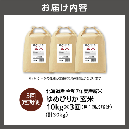 【定期便】北海道産 ゆめぴりか 玄米 10kg×3回