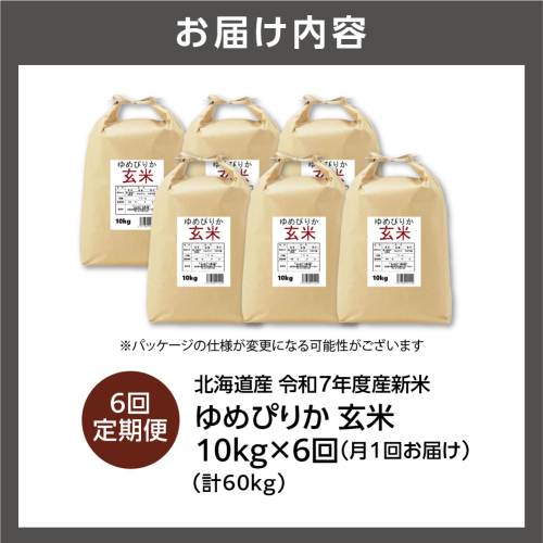 【定期便】北海道産 ゆめぴりか 玄米 10kg×6回