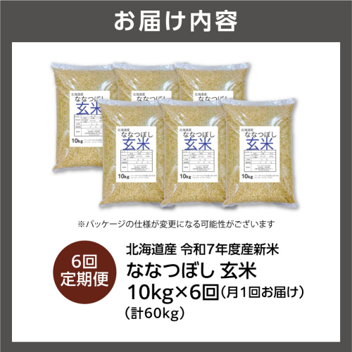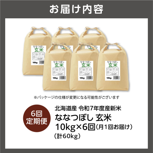 【定期便】北海道産 ななつぼし 玄米 10kg×6回