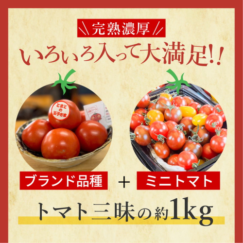 完熟トマト食べ比べセット約1kg 3種類のトマト 美味しさ選別 |とまと トマト 減農薬 野菜 やさい 人気 新鮮 産地直送 直売 甘い 高糖度 完熟 リコピン ビタミン ダイエット 美容 美肌 愛知県 美浜町 ※2026年1月上旬~5月下旬頃に順次発送
