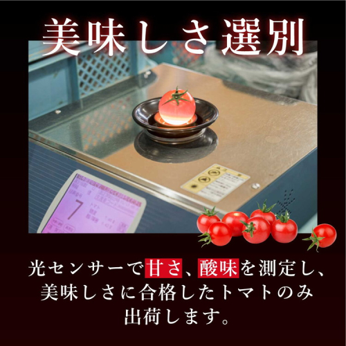 収穫したトマトは光センサーで「美味しさ選別」を行い、甘さ・酸味ともに合格したトマトだけをお届けします。
