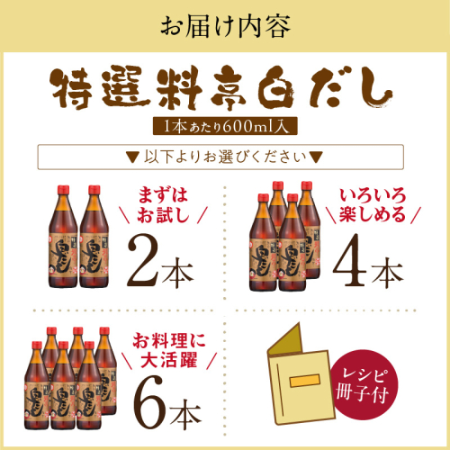 - 特選料亭白だし600ml×6本 (レシピ冊子付き)