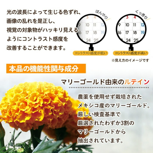 体内で作ることのできないルテインを補うことができる機能性表示食品です。