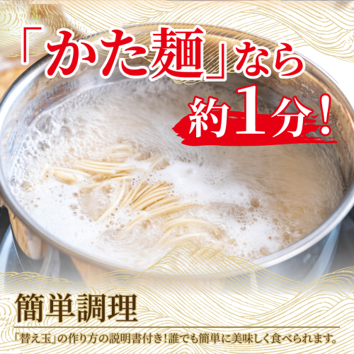 沸騰したお湯で人気の「かた麺」なら約1分での簡単調理。「替え玉」の作り方の説明書付きなのでご安心を!