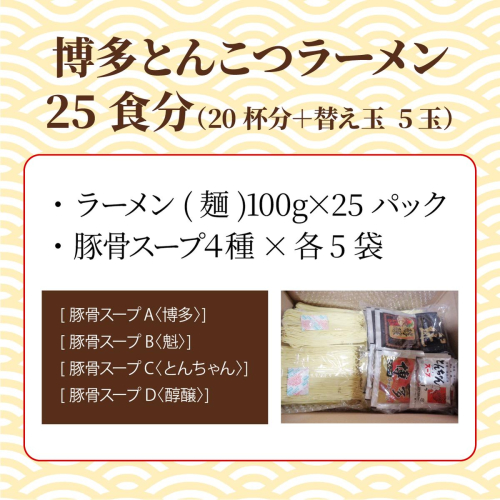 【4種の豚骨スープ】博多とんこつラーメン25食分(20杯分+替え玉5玉)【本場博多産のスープ】
