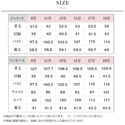 ジャケット・ワンピース共通:表地・裏地 ポリエステル100%