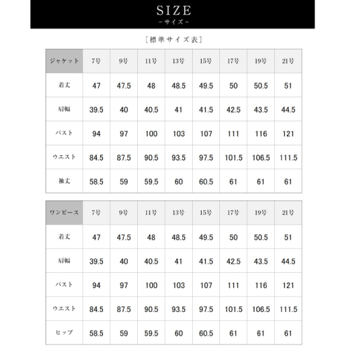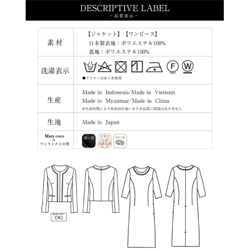 ジャケット・ワンピース共通:表地・裏地 ポリエステル100%