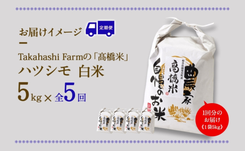 - 全5回お届け定期便 岐阜県 揖斐川町産 ハツシモ「高橋米」白米 5kg×1袋 お米 精米 ご飯 はつしも ブランド米 大粒 炊飯 冷めても美味しい お弁当 ライス 主食 ふっくら お取り寄せ 送料無料