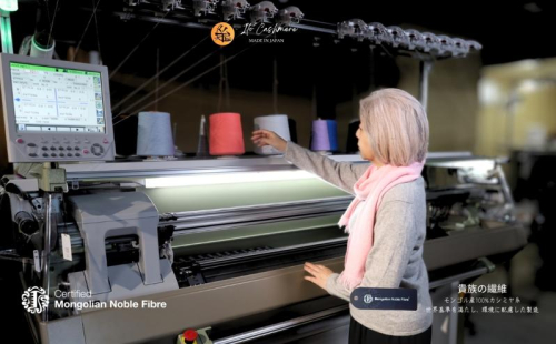 また、モンゴル国より自信をもって推薦されている「Mongolian Noble Fibre」トレードマークの100%カシミヤ糸のみを厳選して使っています。