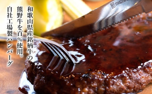 和歌山県産銘柄牛の熊野牛を100%使用。自社工場製ハンバーグです。
