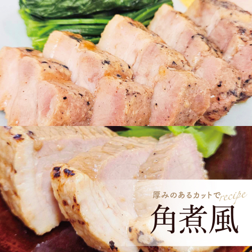 炭焼き風味が香ばしいモモ肉とバラ肉のチャーシュー食べ比べセット。