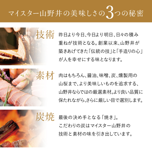 山野井独自のオリジナルのタレを充填して真空調理で仕上げました。