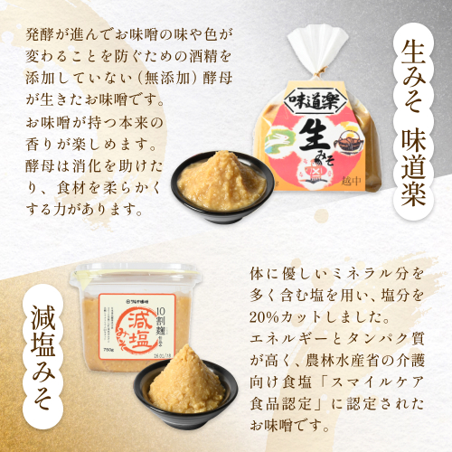 体に優しいミネラル分を多く含む塩を用い、塩分を20%カットしました。エネルギーとタンパク質が高く、農林水産省の介護向け食塩「スマイルケア食品認定」に認定されたお味噌です。