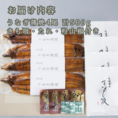 【B-824】近江今津 西友 うなぎ炭火焼蒲焼 4尾/計約500g・きも吸詰合せC[高島屋選定品]