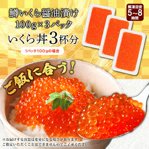 3622. 鱒いくら 醤油漬け 100g×3パック 計300g 鱒 マス いくら イクラ 醤油漬け 小分け 冷凍 魚卵 海鮮 寿司 海鮮丼 手巻き寿司 つまみ おつまみ おかず ごはんのおとも 人気 グルメ ギフト 贈答用 お歳暮 お中元 正月 お祝い 送料無料 北海道 弟子屈町
