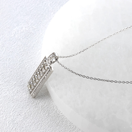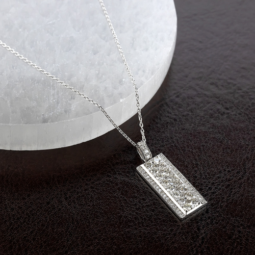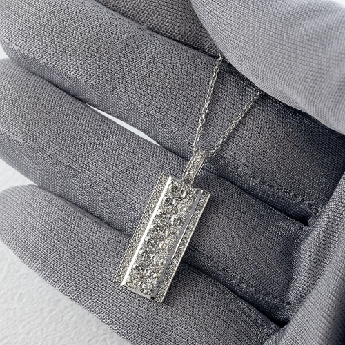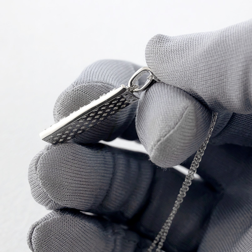 スタンダードな形に全面ダイヤモンドを留めた高級感あふれるバータイプペンダントトップ