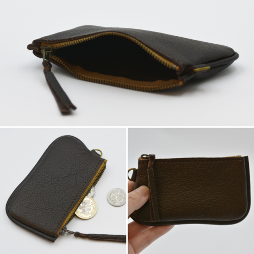 益子の革工房maharoのファスナーコインケース・カードケースセット ダークブラウン|栃木県 益子町 ふるさと納税 コインケース カードケース 2個セット 牛革 手作り(AX133-3)