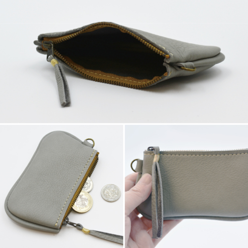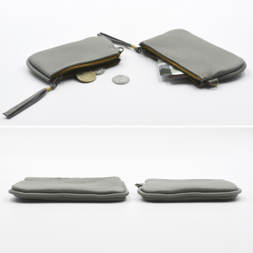 益子の革工房maharoのファスナーコインケース・カードケースセット ライトグレー|栃木県 益子町 ふるさと納税 コインケース カードケース 2個セット 牛革 手作り(AX133-4)