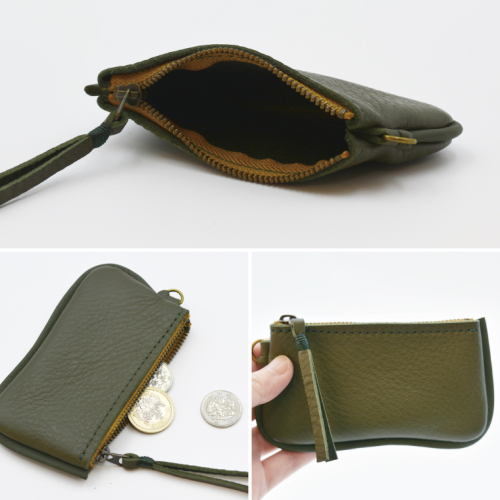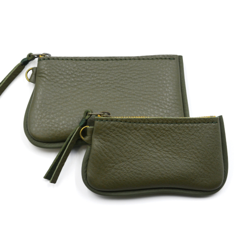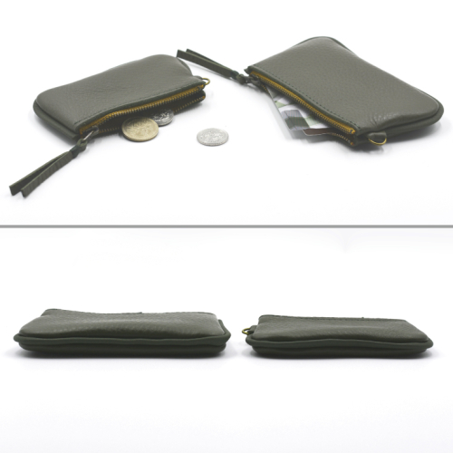 益子の革工房maharoのファスナーコインケース・カードケースセット オリーブグリーン|栃木県 益子町 ふるさと納税 コインケース カードケース 2個セット 牛革 手作り(AX133-6)