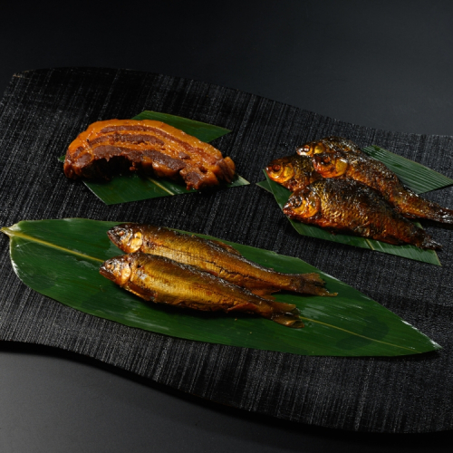 古河名物である鮒の甘露煮をはじめ、接待の手土産セレクションに2度も入選した子持ち鮎の甘露煮、古河ブランドにも認定されている茨城県のブランド豚肉「常陸の輝き」を使用した豚肉の甘露煮を一度に楽しめます。
