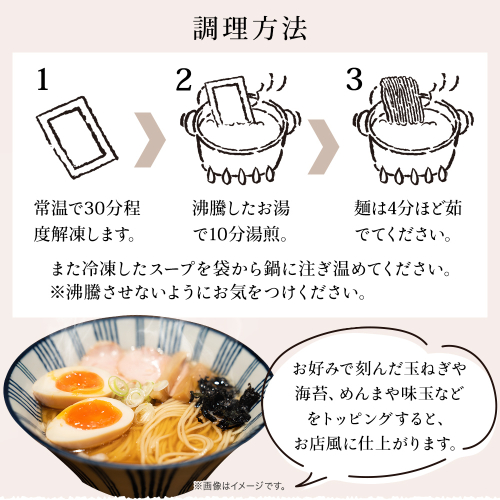 お好みで刻んだ玉ねぎや海苔、めんまや味玉などをトッピングすると、お店風に仕上がります。
